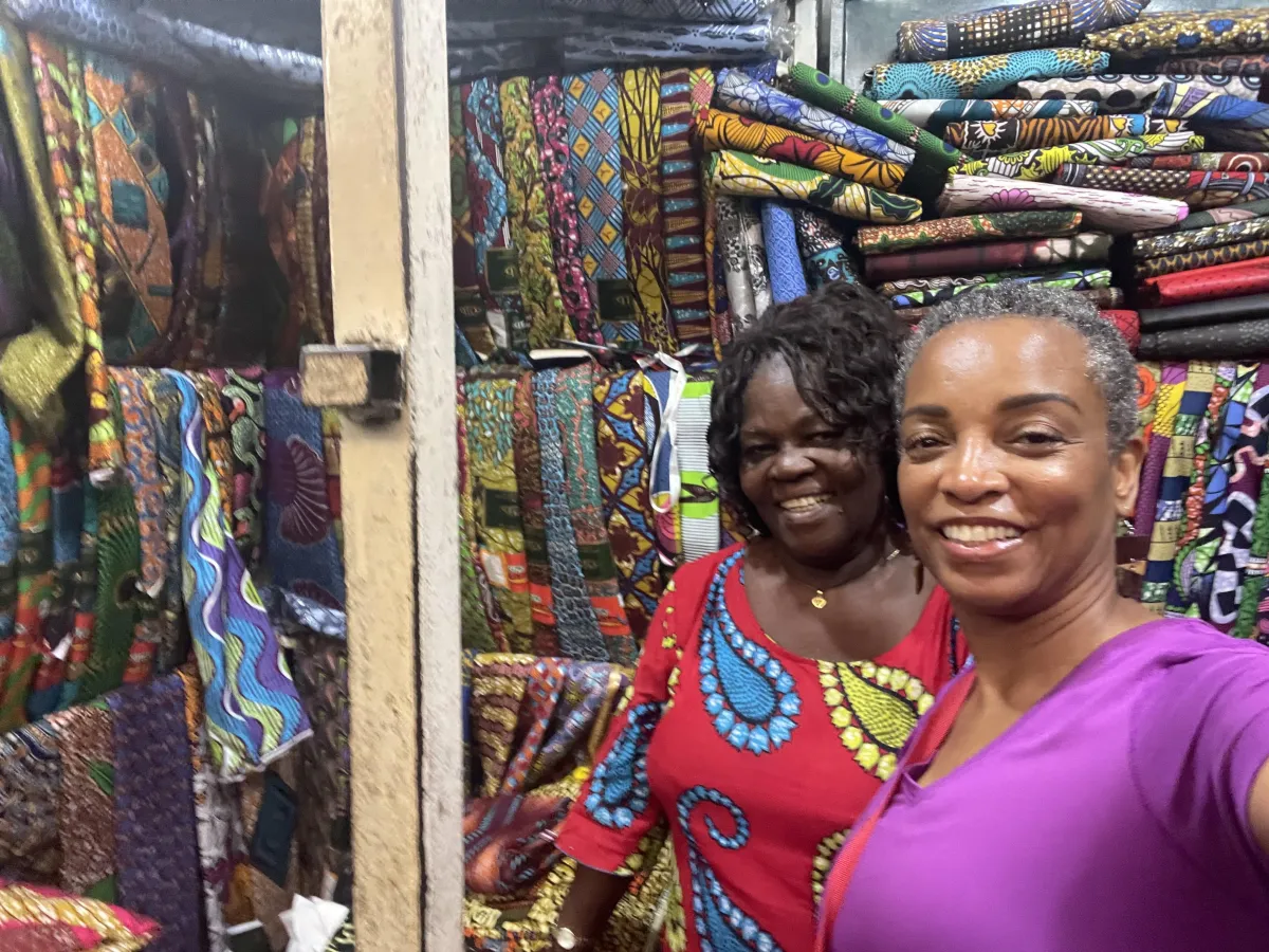 The fabrics in my quilts come from my travels to Ghana and Uganda, where I personally select each piece from local vendors and markets in Accra, as well as luxury stores like Vlisco and Woodin. Vlisco and Woodin are know for their high-end African wax print fabrics and new collections.