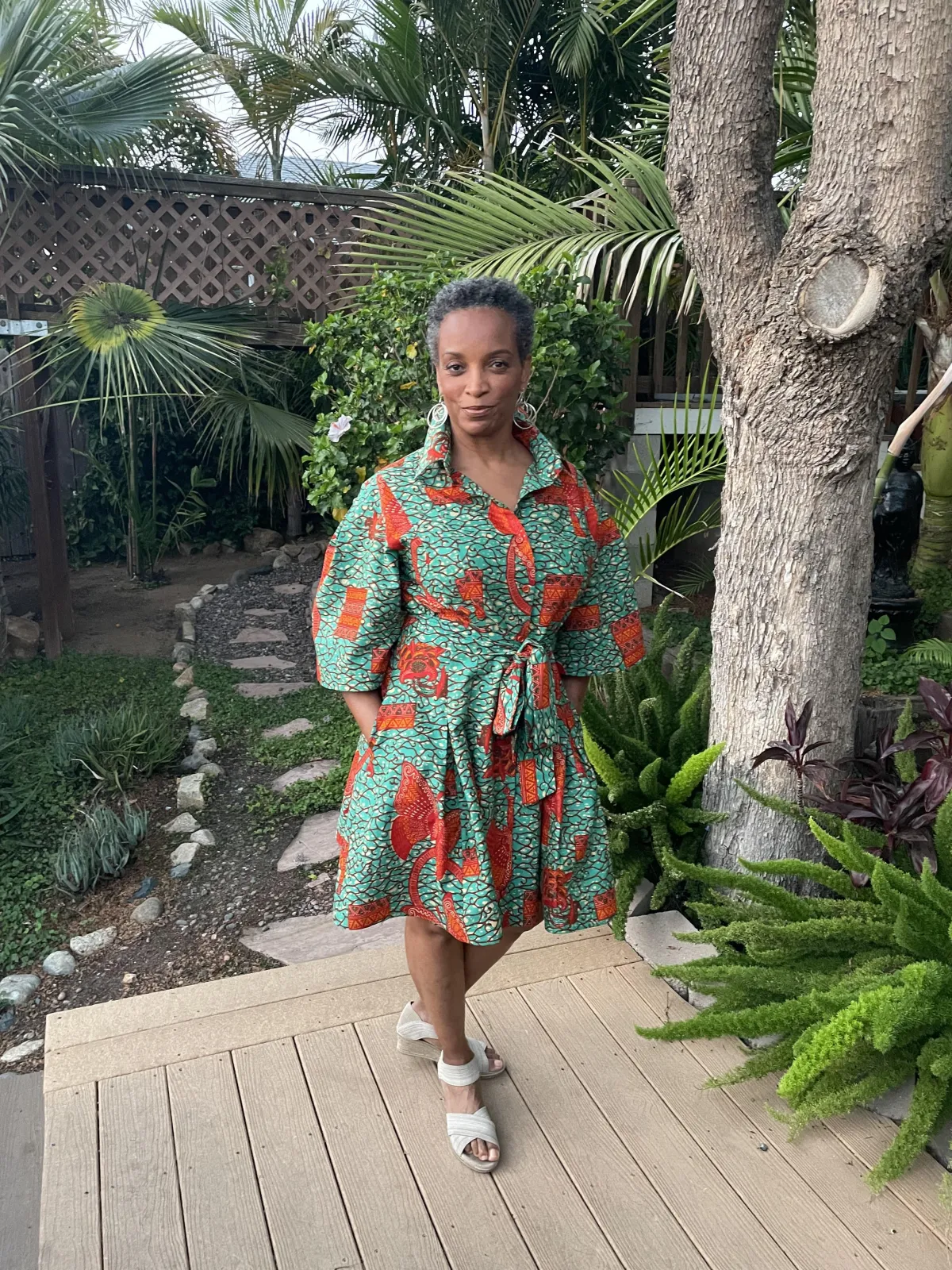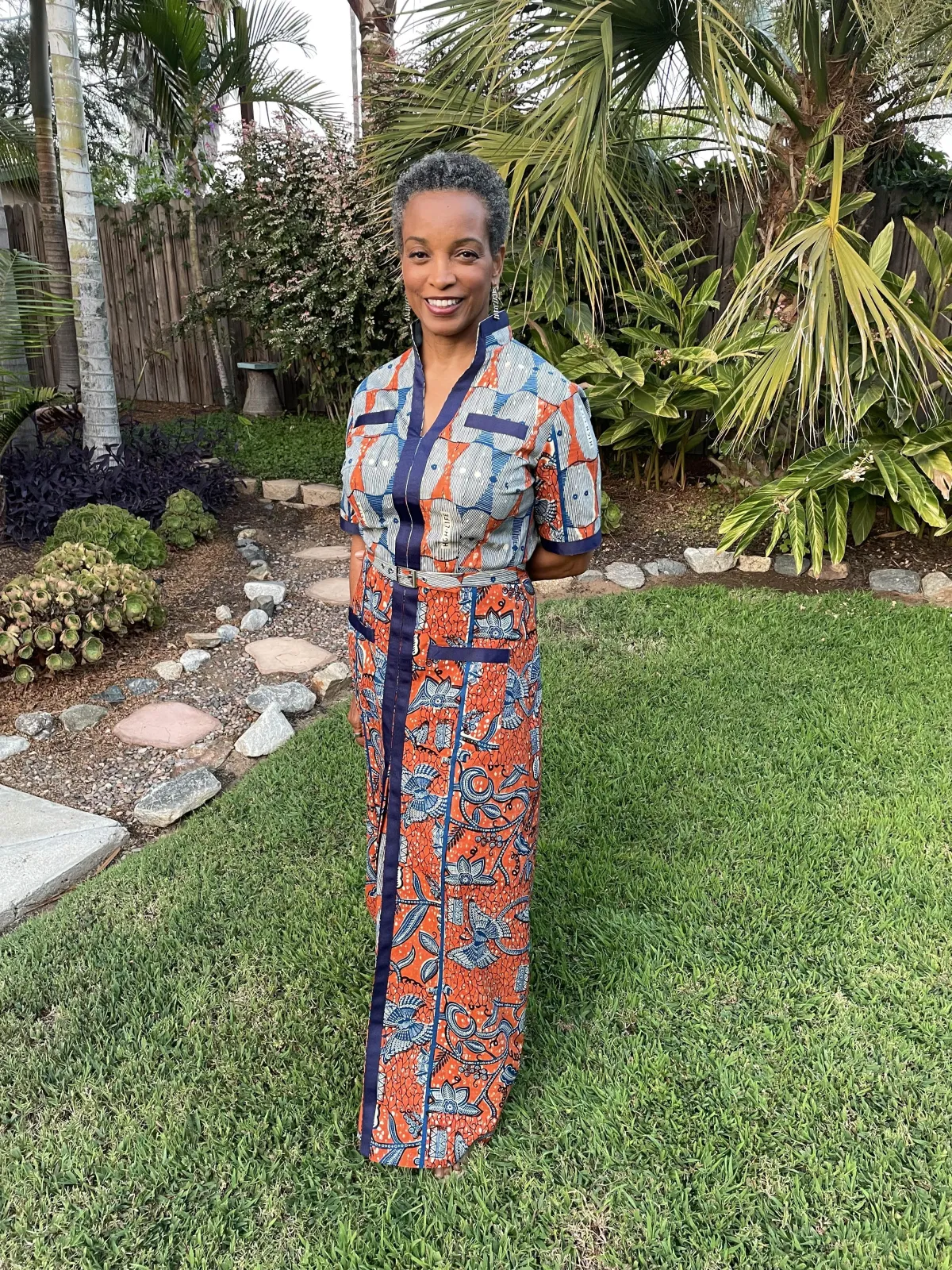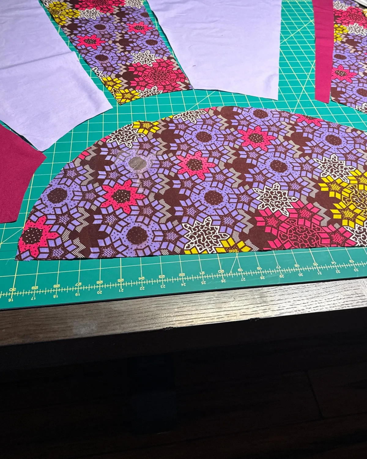 Most of the fabrics I use are GTP (Guaranteed Turkish Print) wax prints—vibrant, durable textiles with a rich and complex history. Originally created by Dutch colonizers attempting to mimic Indonesian batik for the African market, these fabrics were rejected in Indonesia but embraced and transformed by West Africans into something entirely their own.